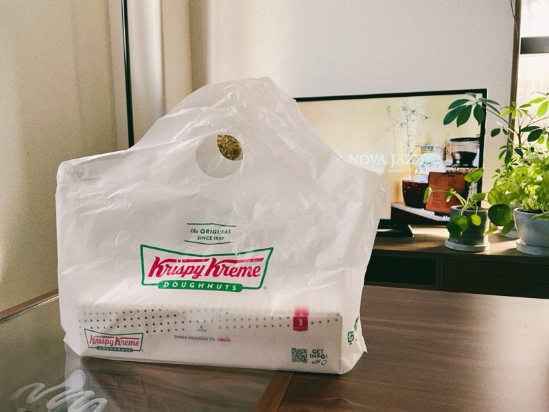ギリギリまで何をしようか迷って迷って、おやつにクリスピークリームドーナツでドーナツを買ってきた!