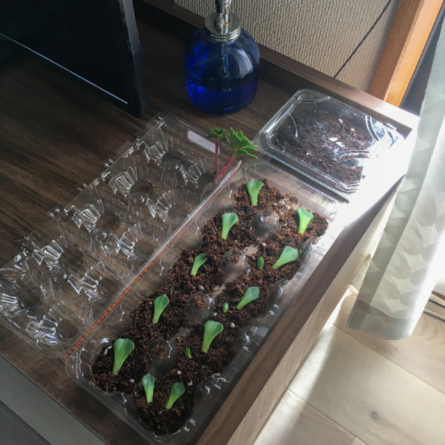 昔学校で教わった(農業高でした)、卵パックでミニ温室を作って発芽させる方法で発芽させてみることに。