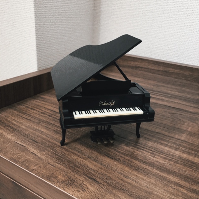 小さい頃遊んでたシルバニアファミリーのおもちゃで、近くで見ると鍵盤黄ばんでるし汚いんだけど笑、それもアンティークっぽい味ということでいけるかなって。