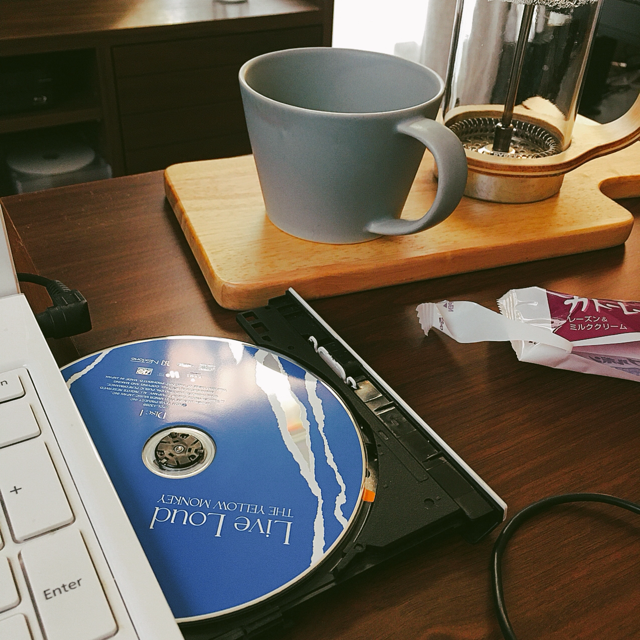 仕事関連の配信講座をやりながらお茶飲んでお菓子食べ散らかして満を辞してLive Loud聴いてたら急に止まっちゃって一旦取り出した夕暮れ時の一コマ。長い。