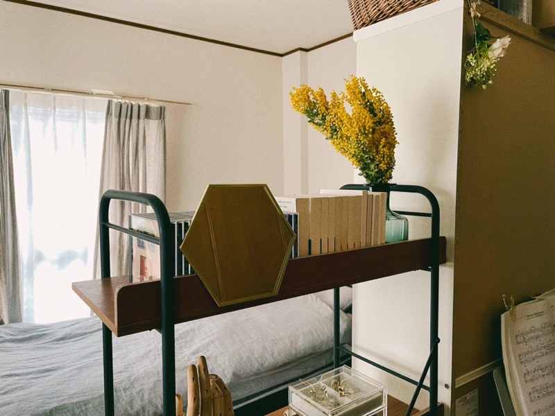 ミモザを飾りたくて探しまくった時期があったからやったね、思わぬタイミングで叶いました。やっぱり色悪くなってっちゃうのかなー。でもそれまでは♪どうだろう、我が家に似合ってる?
