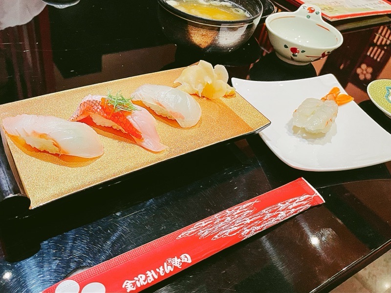 私は鯛と海老が大好物なので、白身三貫盛りと、赤海老と、