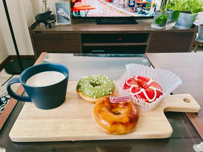 ギリギリまで何をしようか迷って迷って、おやつにクリスピークリームドーナツでドーナツを買ってきた!