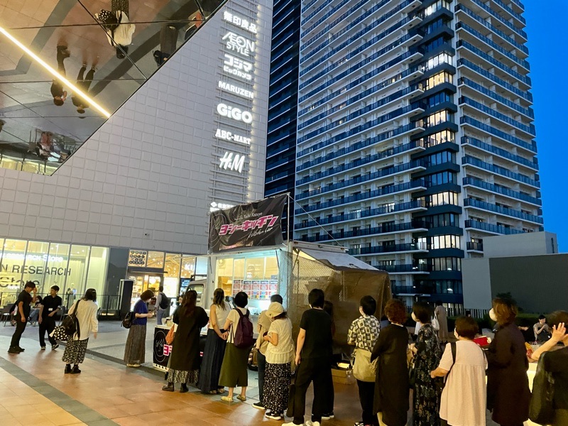 道が封鎖されてキッチンカーの前に出るのに一回道を間違えつつ辿り着き、吉井さんが割ったくるみ入りのアイスを食べたい一心でキッチンカーの列に並ぶ(仕込みのBGMがくるみ割人形だったのがまた笑えるw)。今日はホテルに帰ればいいから急がなくていいもんねー♪と並んだはいいものの、あれ、思ったより進んでない...?側でかかっている20の曲達と綺麗な月に励まされ、21時過ぎから並んでレシートの時間22:33。やば!笑