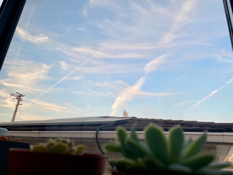 友人が帰った後、ふと窓の外を見たら翼を広げた鳥のような雲がいた。見方によってはちょっとプテラノドンっぽくもある。