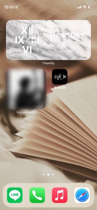 今のスマホに変える前まで、壁紙をドーンとアー写にしていたので、写真が見えるように1ページだけ吉井さんサイトのアプリのみ置いたページを作っていました。