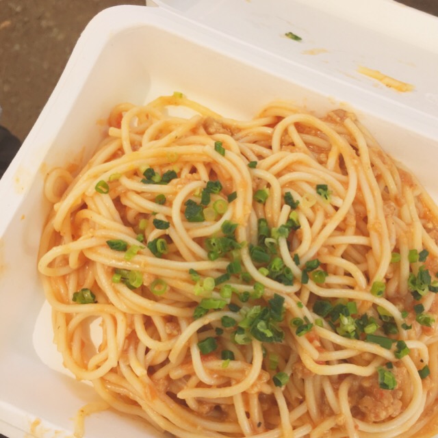 肉系ばっかりでどうしようかと思ったけど(苦手...)、ちゃんと食べないともたないし、ミンチは大丈夫だからミートソースのパスタをチョイス。