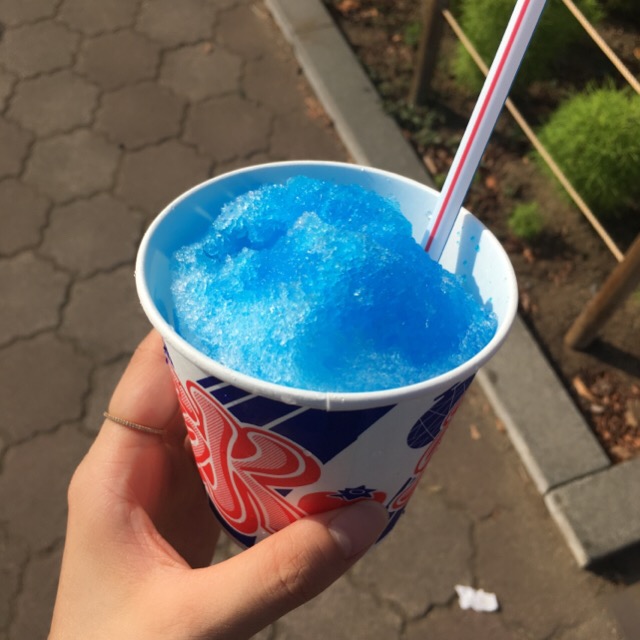 エレカシの後、スピッツまでの間で体を冷やしたくて、かき氷を求めて見かけていたPARK STAGEの方面のかき氷屋さんへ...歩いていたつもりだったのが、間違えてもう一つのゲートから出ていた我々。