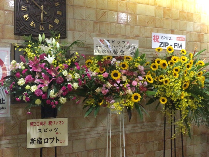 それから入場してすぐの、エントランスにあったお花。昨日はスルーしてたけど、よく見ると昨日のMCでも話が出ていた新宿ロフトさんからお花が届いてるではないかー!というわけで記念撮影。